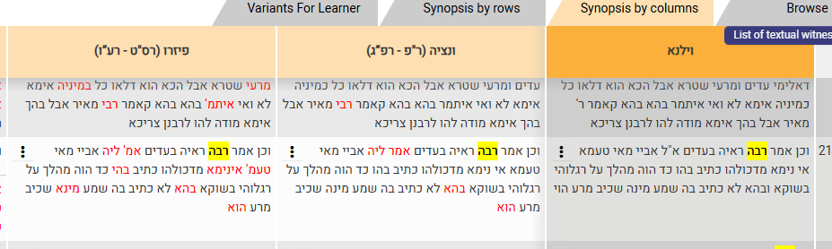 Here is the print and manuscript breakdown. The printings have Rabba: