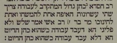 Thus, in Menachot, Mar bar Chiya, an obscure and late Amora, isn’t arguing with Rav Chisda and saying that the Kohen Gadol brings three rather than two menachot. He is “arguing” with Rav Ashi and the standard Talmudic text, and believes that Rav Chisda actually said that there were three menachot. The Talmudic Narrator, in his typical manner, harmonizes the dispute and shows how they are dealing with different cases. This is even more plausible if these are both accounts of Rav Chisda’s position.