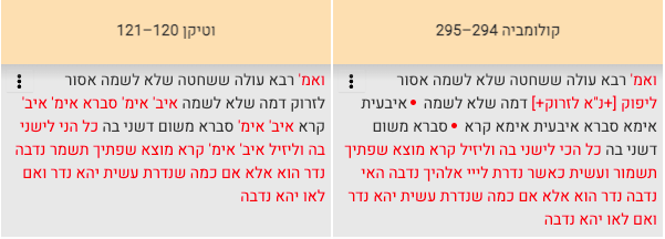 [E] For Rava stated: an olah which was shechted not for its own sake, it is still forbidden to follow up with a zerikat dam not for its own sake. [F] The Talmudic Narrator (not Rava*) expands on this to find the basis for Rava’s statement, as either logic or Scripture. [G] The logic is: just because he deviated improperly, shall he be permitted to proceed to deviate? [H] The Biblical basis is Devarim 23:24, “That which has gone out of your lips you shall observe and do; according to what you have vowed / נָדַרְתָּ to Hashem your G-d as a gift offering / נְדָבָה.” While neder and nedava function well as Biblical poetic parallelism, within technical halachic definitions, a neder and a nedava are entirely different, so how can both terms be used? Rather, if you sacrificed it properly, it will be a satisfactory neder offering; if not, it has the status of a nedava offering.