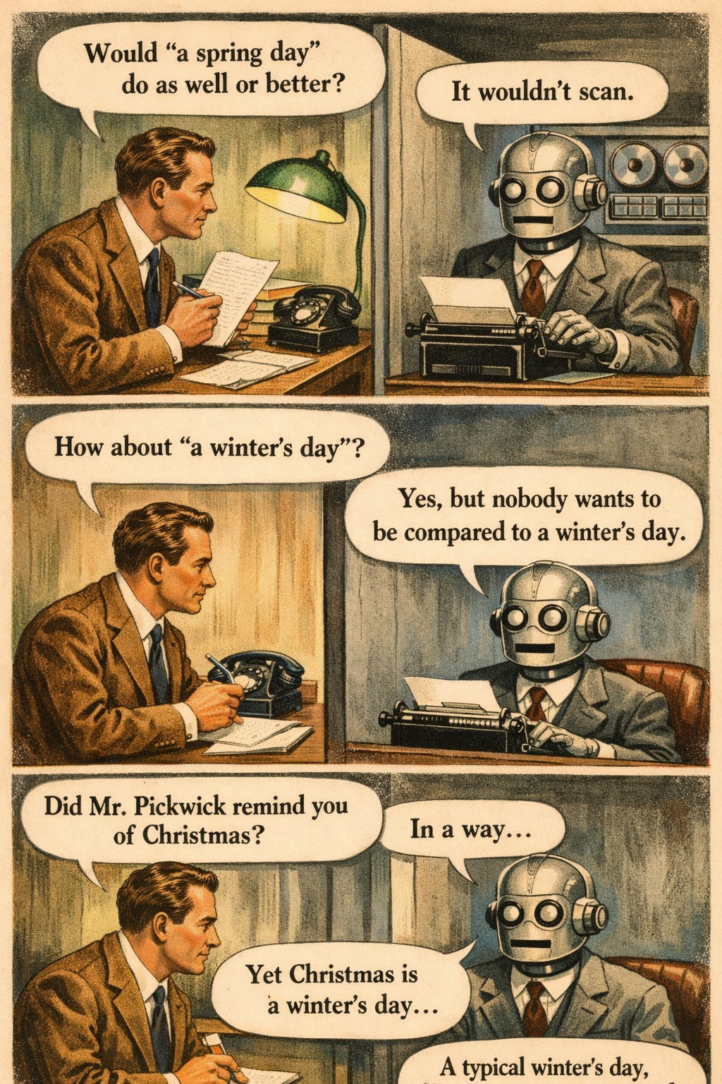 Interrogator: Yet Christmas is a winter’s day, and I do not think Mr. Pickwick would mind the comparison.