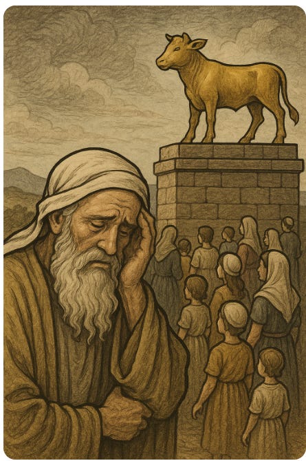 That proved to be a cause of guilt, for the people went to worship [the calf at Bethel and] the one at Dan.