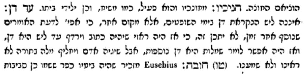 עַד־דָּֽן. שָׁם תָּשַׁשׁ כֹּחוֹ, שֶׁרָאָה שֶׁעֲתִידִין בָּנָיו לְהַעֲמִיד שָׁם עֵגֶל (סנה’ צ”ו):