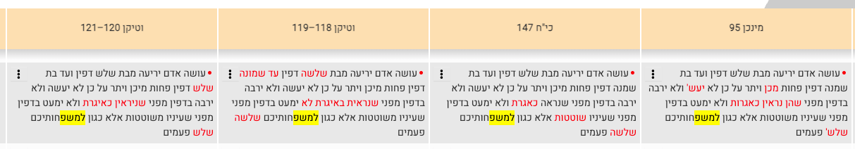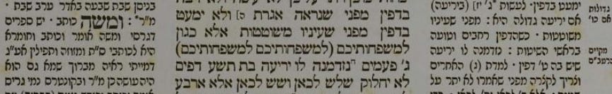 And he may not increase the number of columns, e.g., by writing eight columns on a narrow sheet of parchment, since then each column has the appearance of a missive due to its narrow lines. And he may not decrease the number of columns, e.g., by writing three columns on a wide sheet of parchment, since then the lines will be so wide that the reader’s eyes will wander, as it will be difficult to find the beginning of a line. Rather, the ideal width of a line is, for example, where one can write “lemishpeḥoteikhem,” “lemishpeḥoteikhem,” “lemishpeḥoteikhem,” for a total of three times.
