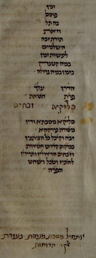 But of course, even without it, the first sofer’s hand made it clear that Zevachim was finished. That is why the words selika masechta appears, followed by a masoret listing out the titles of each perek!